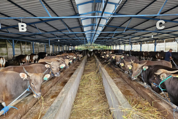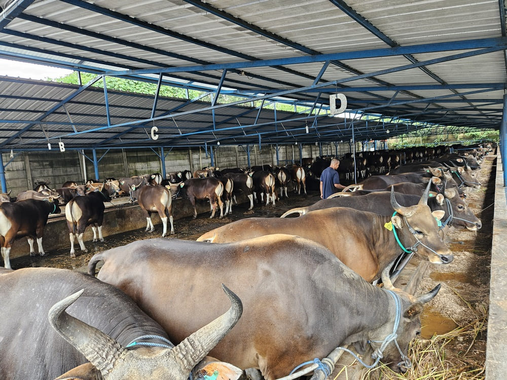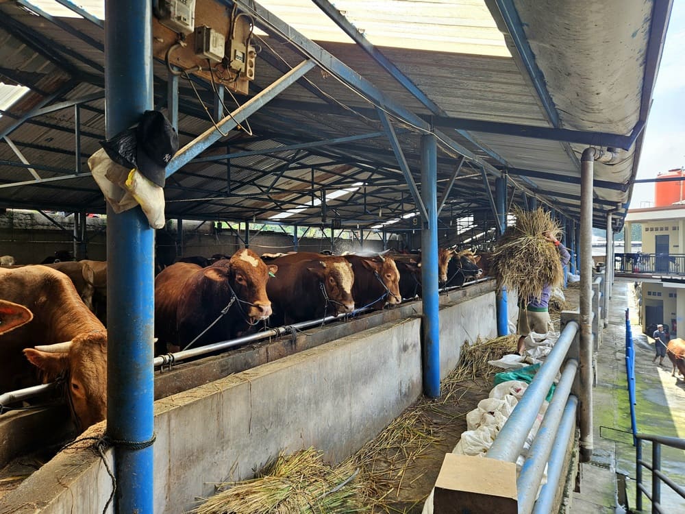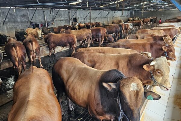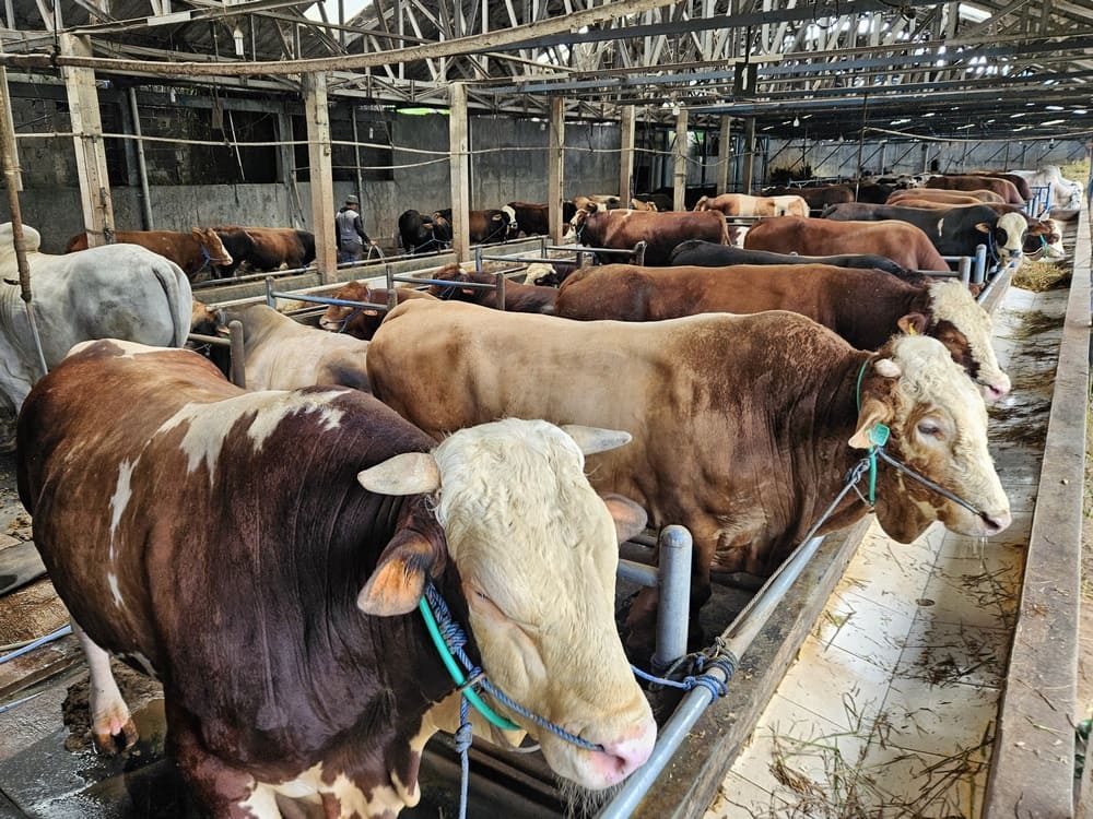 Sapi dirawat dengan pakan bernutrisi, kandang bersih, dan pemantauan kesehatan rutin oleh tim berpengalaman.